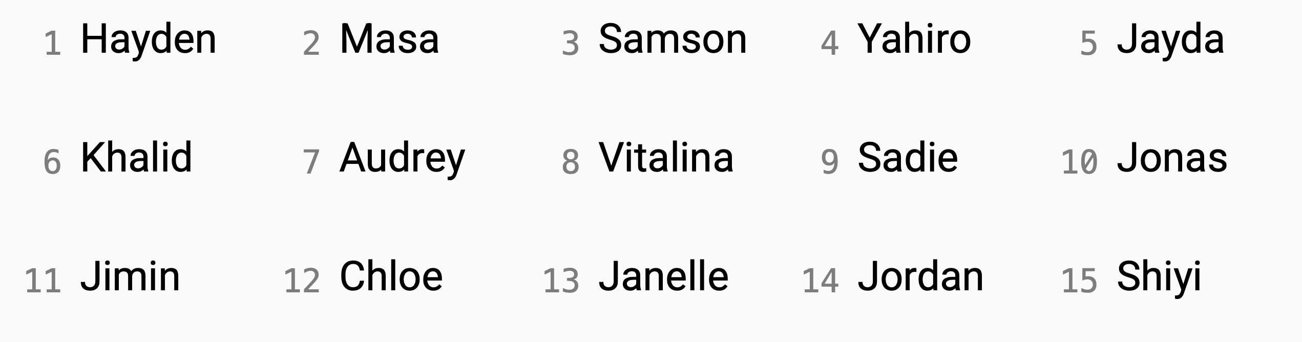 - Here is the schedule tomorrow morning’s interviews, as determined by random selection in today’s class: