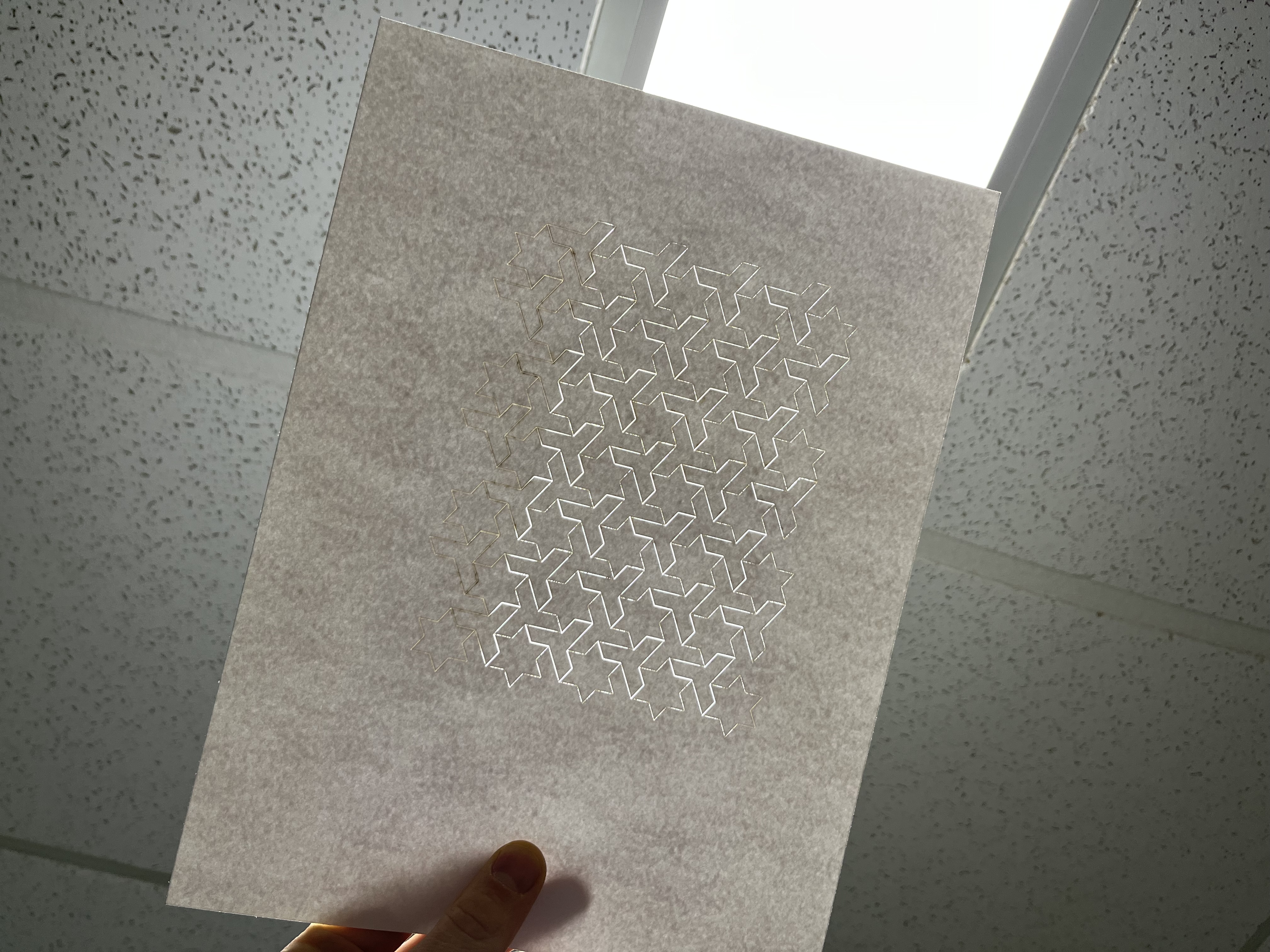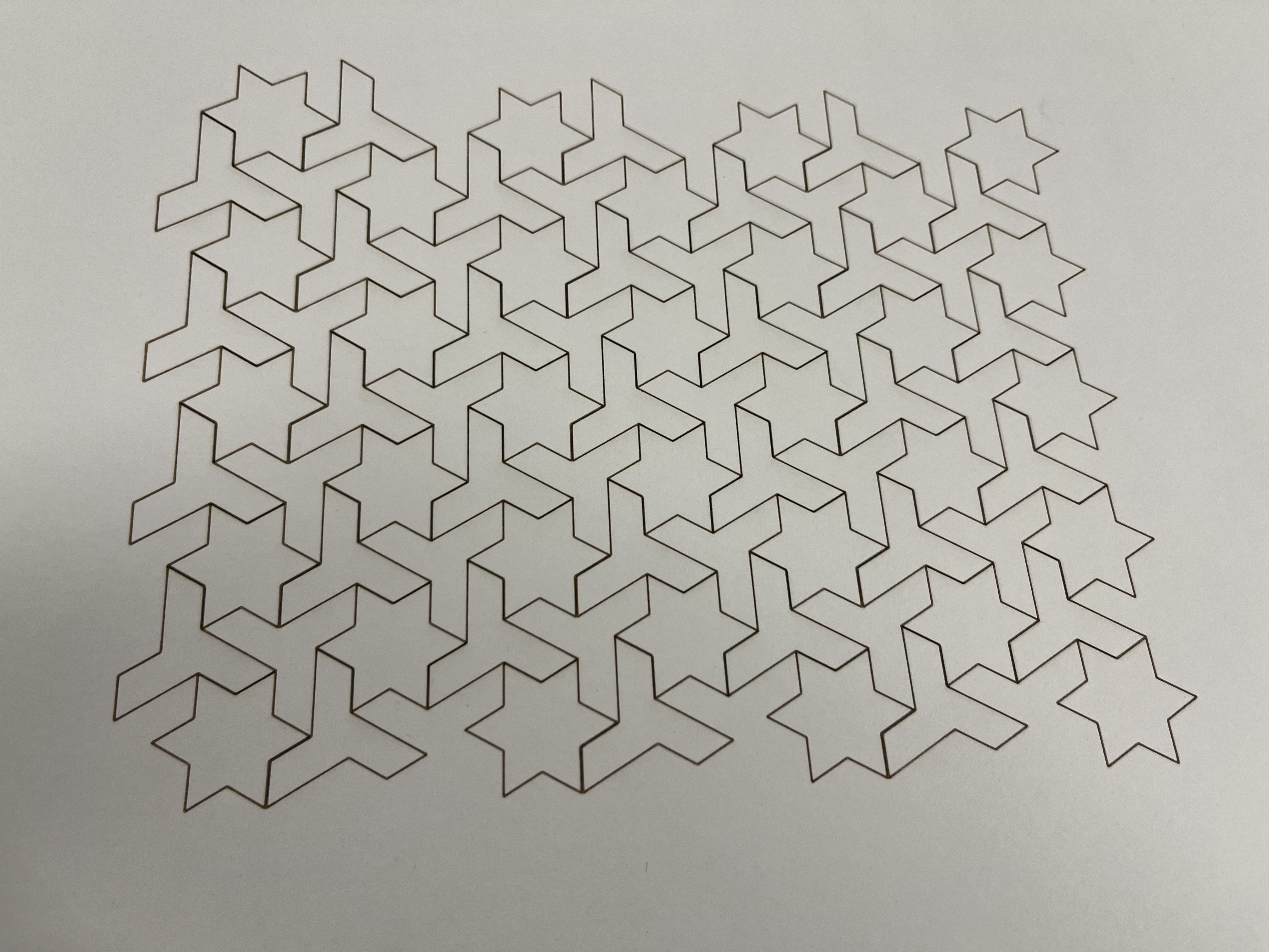 Here is a photo of a tessellation sent to the laser cutter here at LCS – this tessellation was made by Amy Shin, a graduate of LCS: