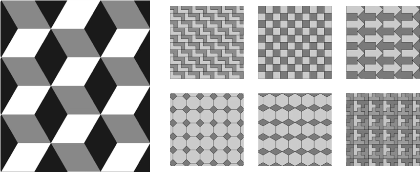 A tessellation is a tiling of one or more shapes that fills a plane without gaps: