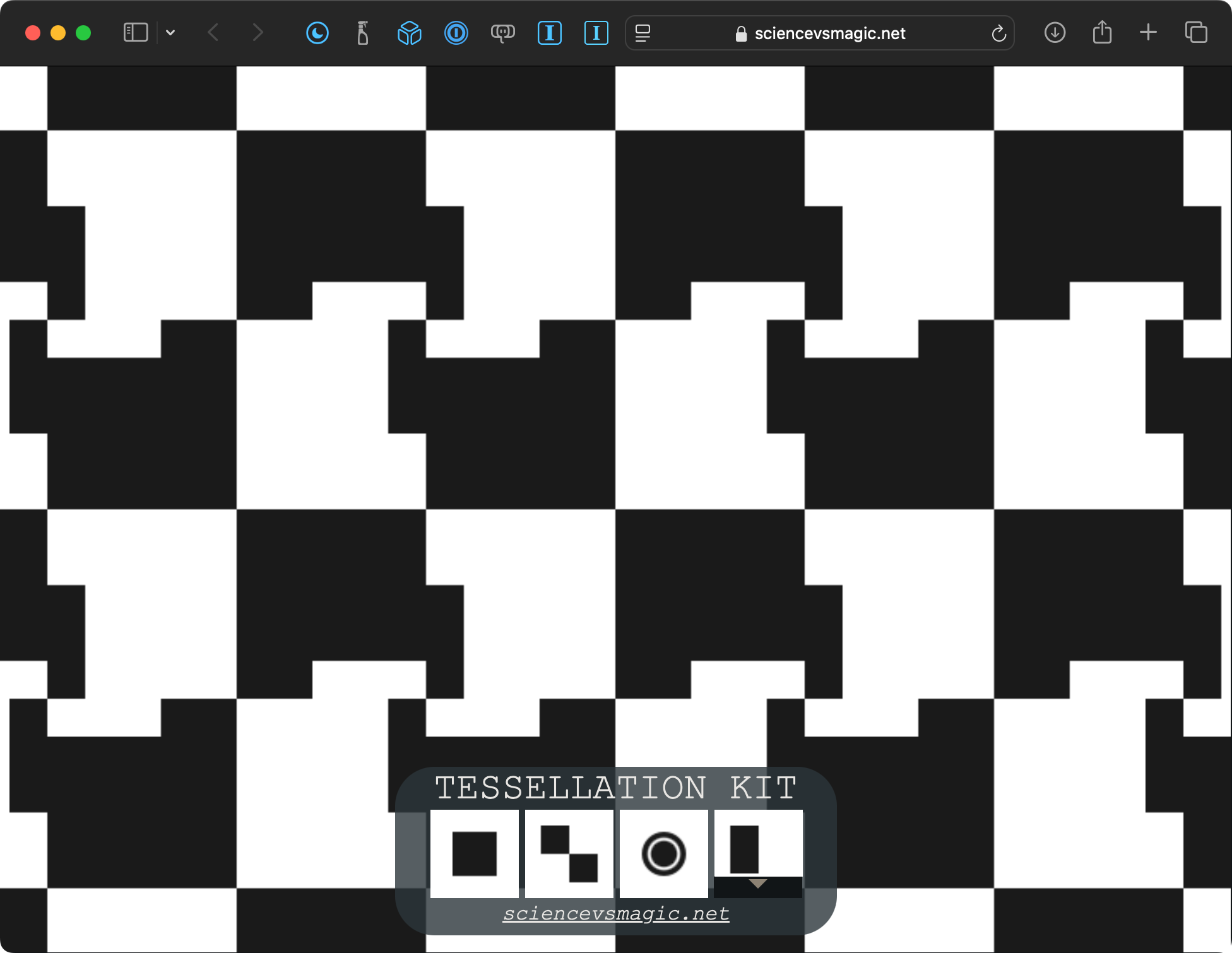 Of course, one can always search the web to find examples of simple tessellations, but the Tessellation Kit website is particularly fun and useful for creating custom tessellations of your own design:
