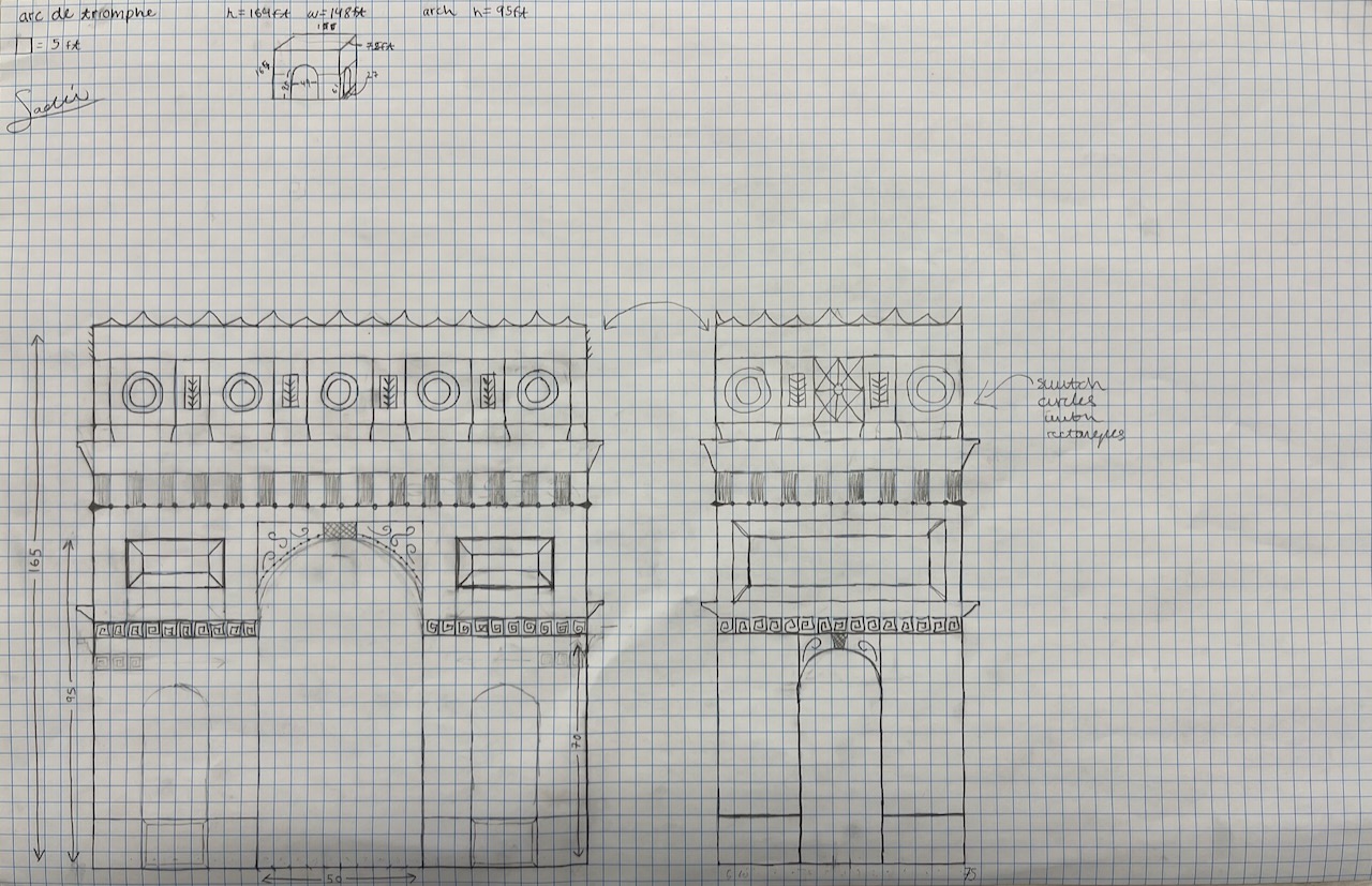 Here is her plan – based on some discussion with and feedback from Mr. Gordon, she has made a reasonable decision to omit some of the sculpture details from the arch: