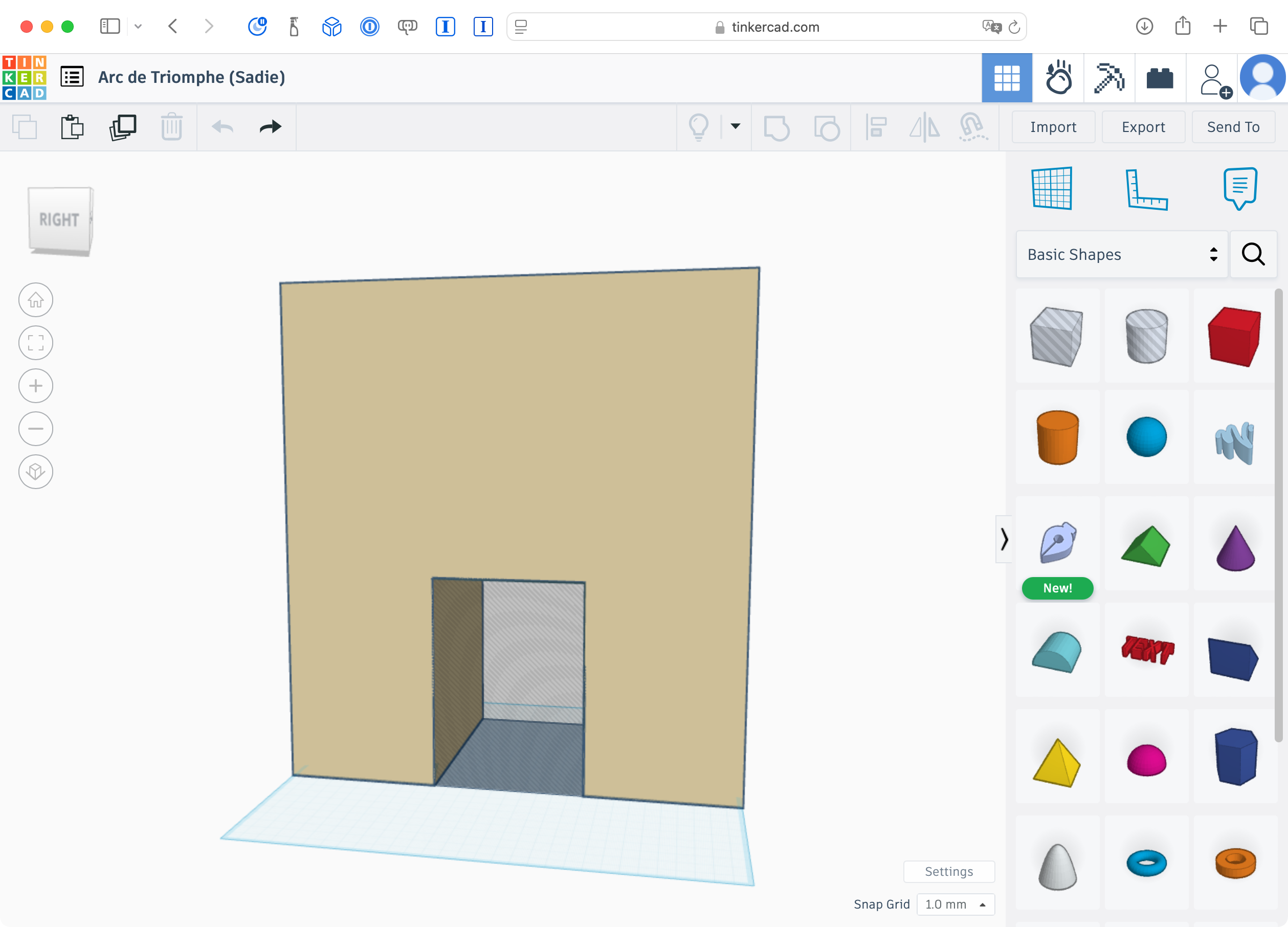When moving to the modelling phase in Tinkercad, Sadie worked with Mr. Gordon to set the size of the workplane so that it matches the width of her structure: