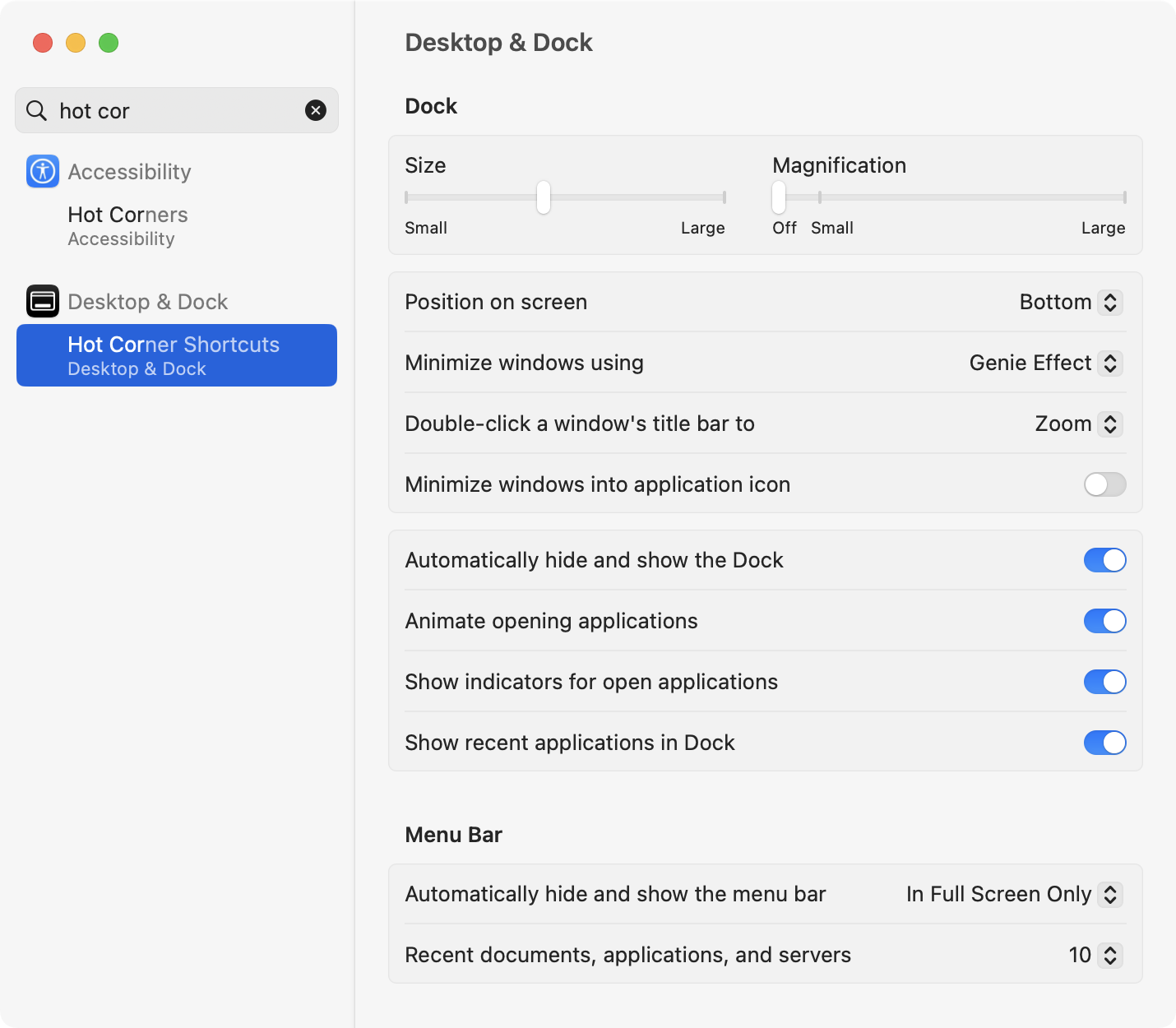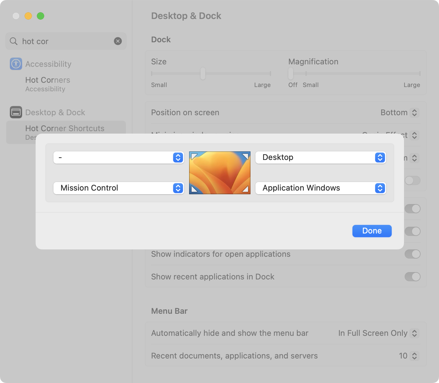 A “hot corner” is a shortcut in macOS, where you can move your mouse cursor to a corner of the screen to make a given action occur.